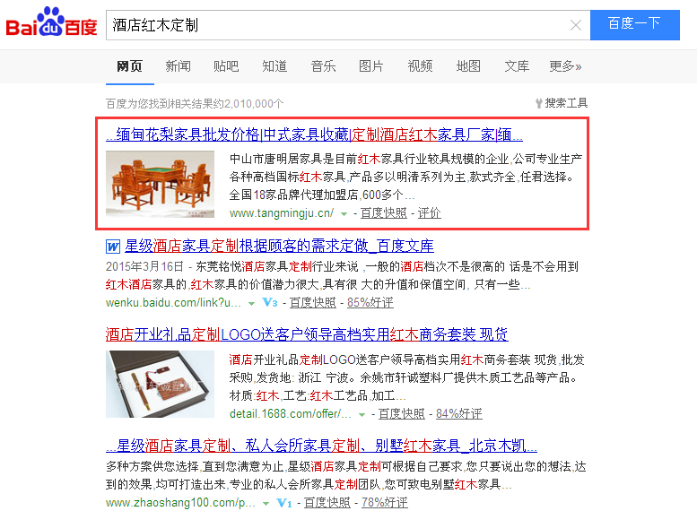 “酒店紅木定制”百度第一頁(yè)第一名: