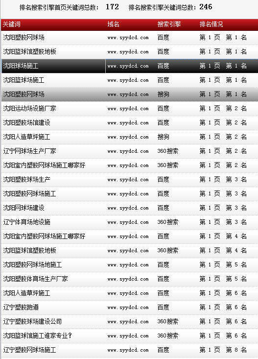 關鍵詞“沈陽球場施工”在百度排名:第1頁第1名