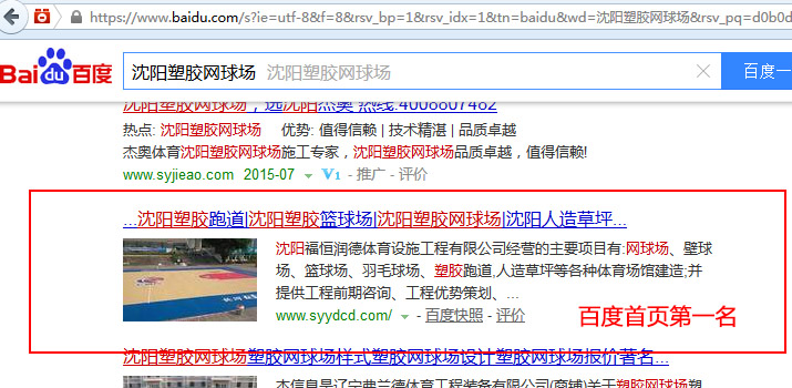 關鍵詞“沈陽塑膠網球場”在百度排名:第1頁第1名