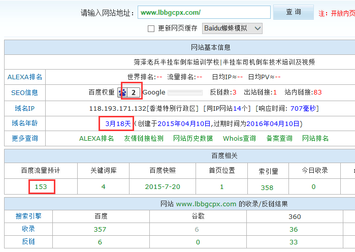關鍵詞在各大搜索引擎排名情況: