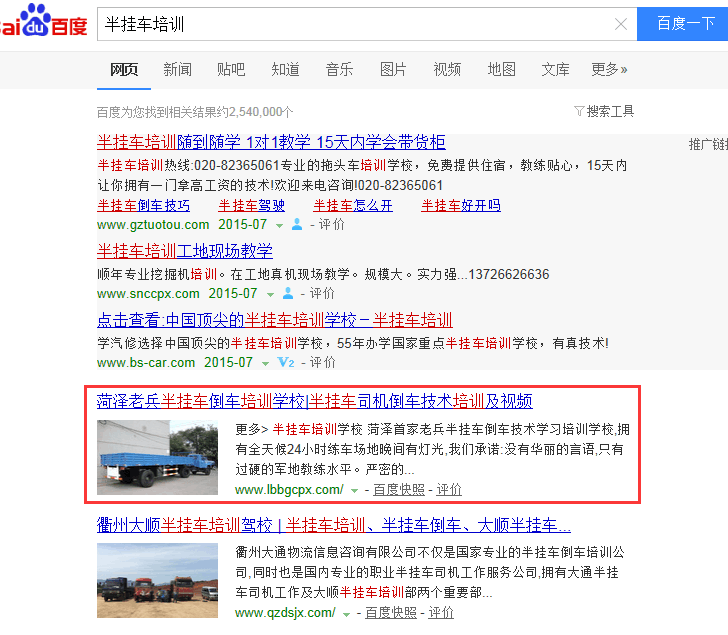 關鍵詞“半掛車培訓”在百度排名:第1頁第1名