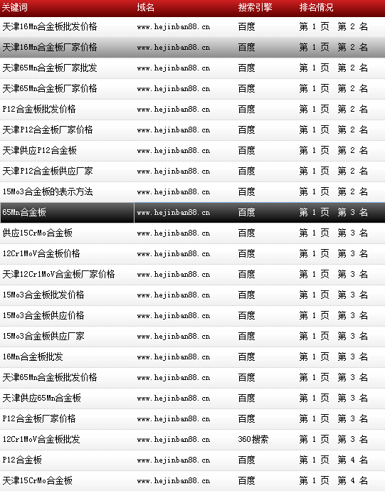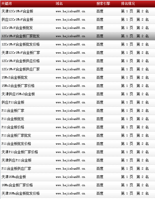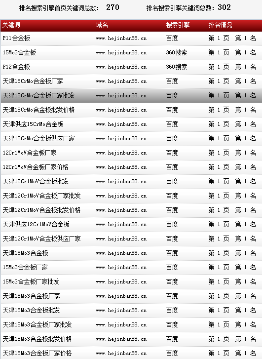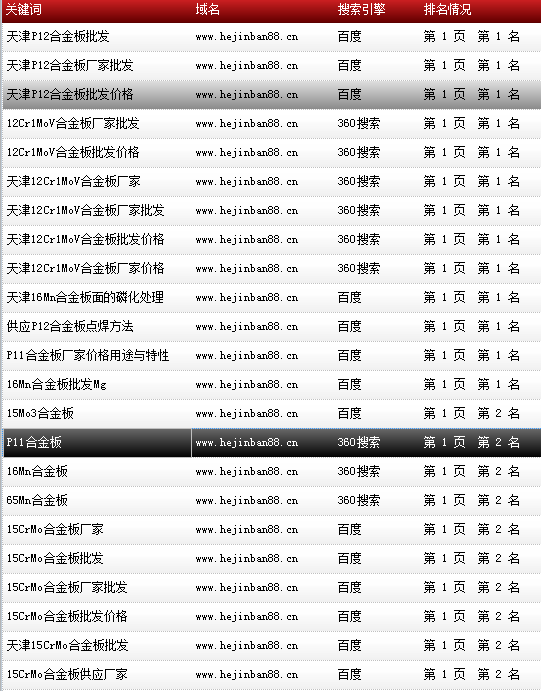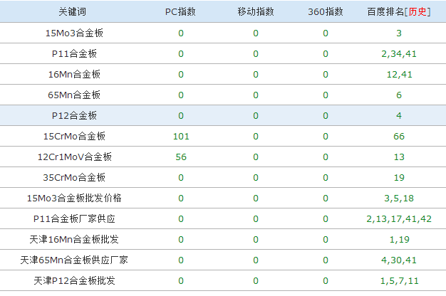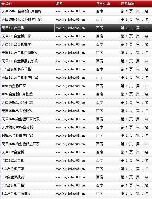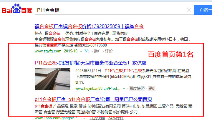 關鍵詞“P11合金板”在百度排名:第一頁第一名!