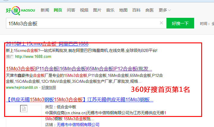 關鍵詞“15Mo3合金板”在好搜排名:第一頁第一名!