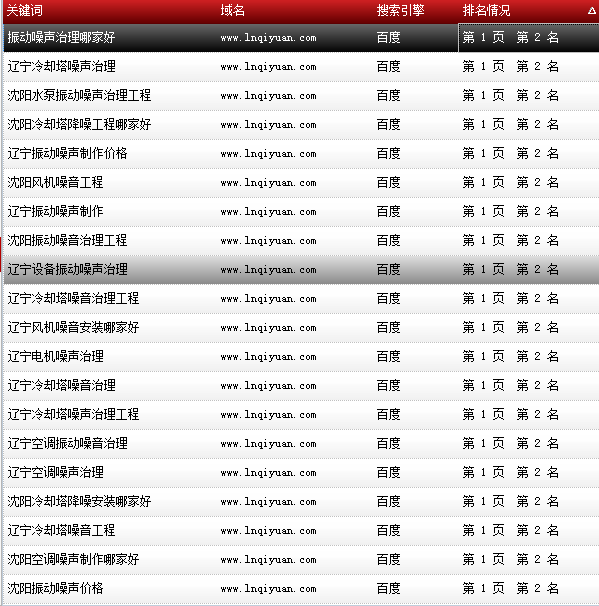 關鍵詞“沈陽噪聲治理”百度排名:首頁第一名: