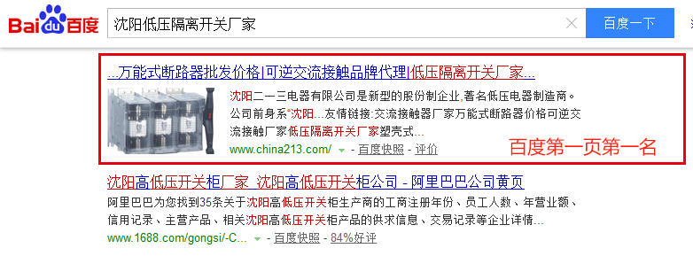 關鍵詞“沈陽低壓隔離開關廠家”在百度排名:第1頁第1名
