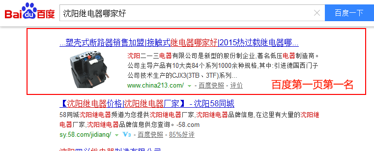關鍵詞“沈陽繼電器哪家好”在百度排名:第1頁第1名