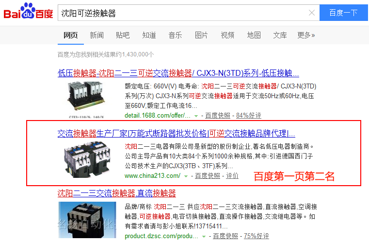 關鍵詞“沈陽可逆接觸器”在百度排名:第1頁第2名