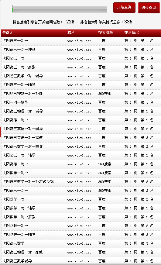 關(guān)鍵詞在各大搜索引擎排名情況: