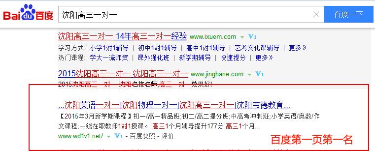 關(guān)鍵詞“沈陽高三一對一”在百度排名:第1頁第1名