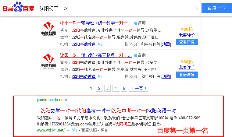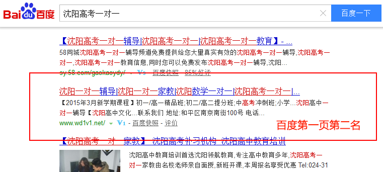 關(guān)鍵詞“沈陽高考一對一”在百度排名:第1頁第2名