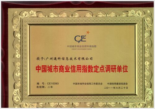 熱烈祝賀“ 廣州通科信息技術有限公司”被“中國市場學會信用工作委員會”、“中國信用建設促進會”評選為“中國城市商業信用指數定點調研單位”。“中國市場學會信用工作委員會”、“中國信用建設促進會”是國內最具權威的國家級別的全國性的市場誠信社會團體,其宗旨“打造誠信企業,構建和諧社會”“提倡誠 信,促進發展”。廣州通科公司因為其誠信經營、客戶滿意度高,而被評選為該組織的調研單位。是國內同行業中唯一給評為“ {dq}信用指數定點調研單位”的單位。通 科公司將再接再厲,繼續發揚誠信經營,造福企業的理念,為中國企業的誠信經營做出自己應有的貢獻。